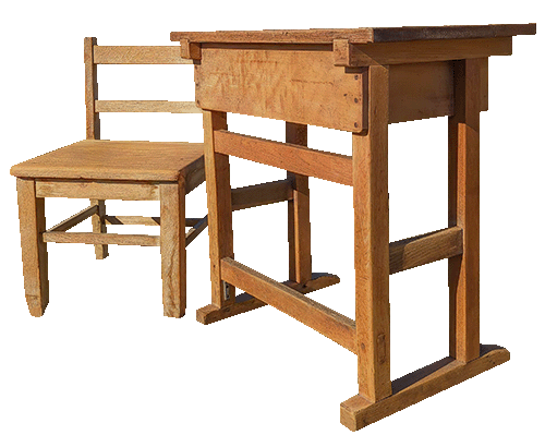 昭和40年代に小学校で使用されていた机とイスです。当時は全て木製でした。